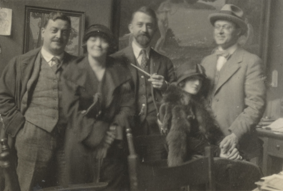 PRÉFONTAINE, FERNAND Henri Hébert, Marcelle Nantais, Adrien Hébert, Clorinthe Perron et Ernest Cormier dans l'atelier d'Adrien Hébert, Montréal 1924