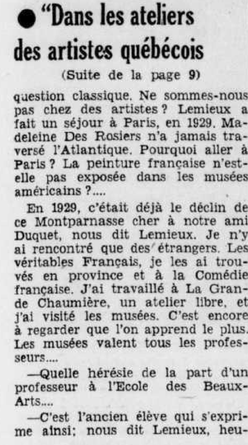 Il prend de plus en plus goût à la peinture moderne et s’affranchit peu à peu des contraintes conventionnelles. En 1937, il retourne à Québec comme professeur à l’École des beaux-artsde Québec, où il enseignera jusqu’en 1965.